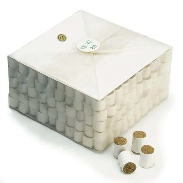 Needle moxa (from China) for warming needles. Moxa is compressed and paper wrapped into 0.6" x 0.45" diameter cylinders. These moxa cylinders may be inserted onto the handle of a metal handle needle or moxa cap. Mini-500 are supplied in a bulk package of 500 pieces.