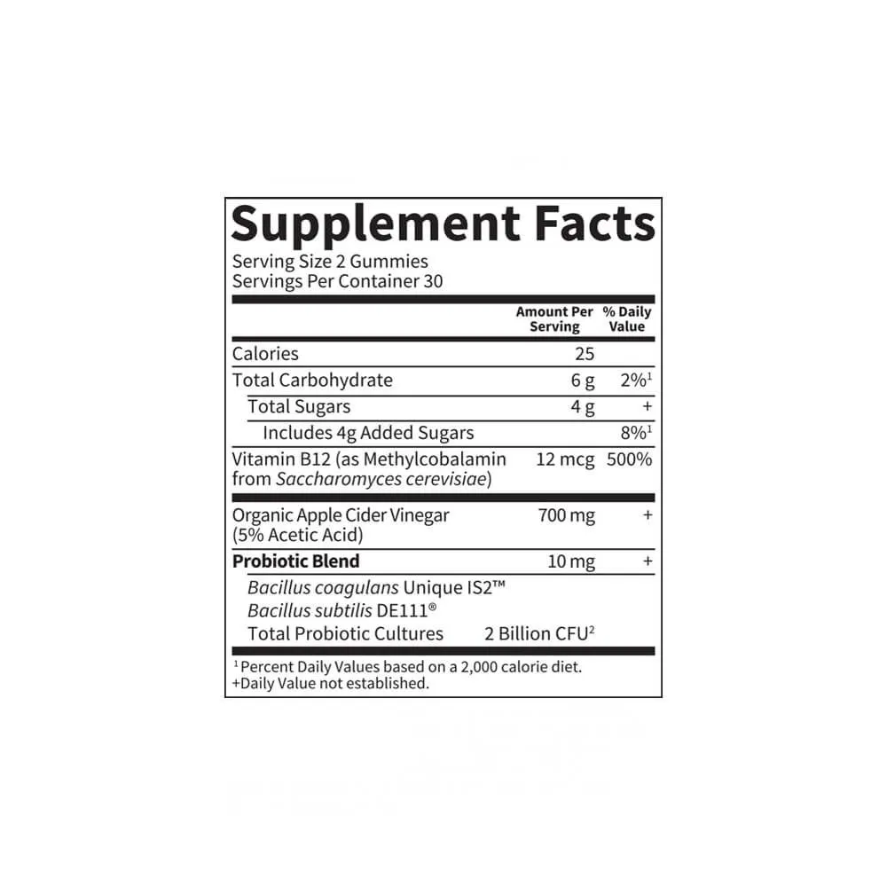 Enjoy the benefits of apple cider vinegar and support your digestive and immune health with these deliciously different gummies. Every serving of mykind Organics Apple Cider Vinegar Probiotic Gummies features a tasty green apple and strawberry flavor, provides 700mg of apple cider vinegar (including 5% acetic acid), and contains 2 billion CFU of probiotics Bacillus coagulans and Bacillus subtilus DE111, clinically studied strains to support digestive and immune health. This USDA-certified organic supplement is vegan, gluten-free, dairy-free, is non-GMO project verified, and uses no artificial flavors, sweeteners, colors or preservatives.