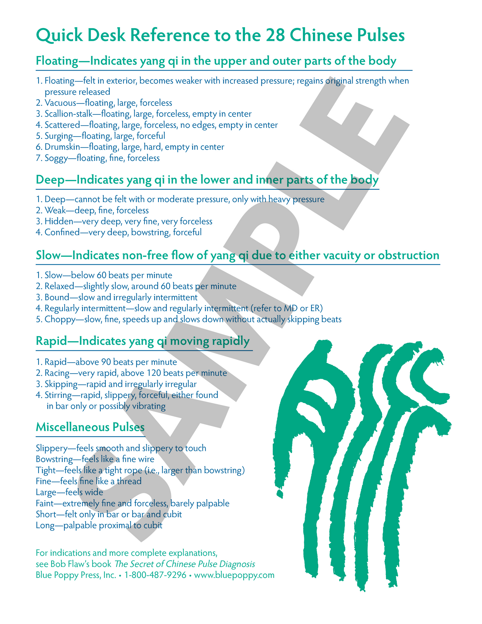 Quick Desk Reference to 28 Chinese Pulses