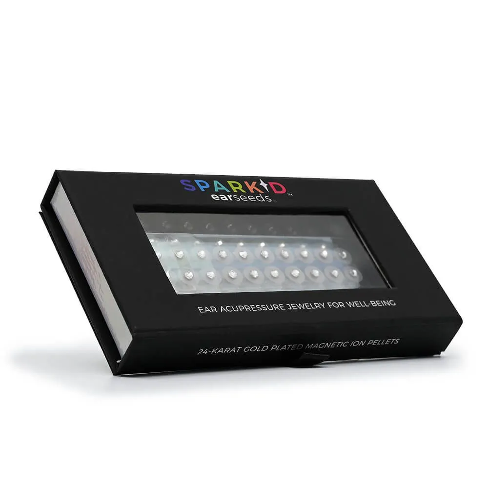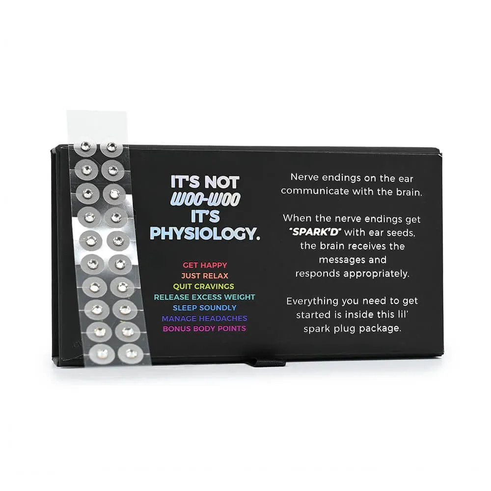 SPARK'D Earseeds let you enjoy the benefits of auriculotherapy in style. Plated with tonifying 24k gold and featuring attractive clear crystals, these ear seeds are used to provide stimulation to points on the ear that provide treatment for medical conditions in other areas of the body. Package includes 60 ear seeds with hypoallergenic, long-wear latex-free clear tape and an educational ear chart featuring points related to common conditions.