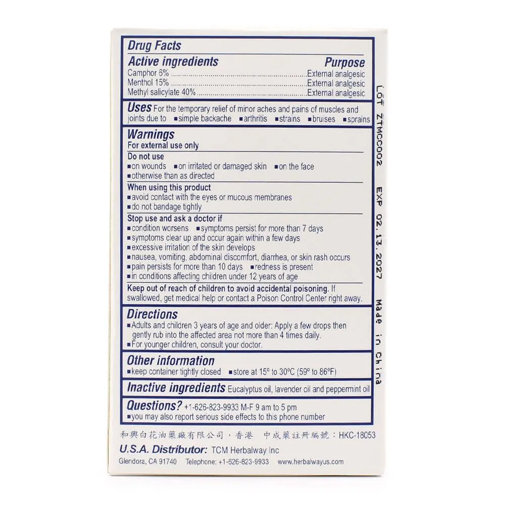 White Flower Oil is nature's elixir for temporary relief of minor aches and pains of muscles and joints. It is a harmonious blend of essential oils, including eucalyptus, lavender, and peppermint, renowned for their natural healing properties. The soothing sensation can be felt quickly as it penetrates the skin to provide instant comfort. This soothing topical may be used to alleviate the symptoms of simple backaches, arthritis, strains, bruises, and sprains. For external use only. Available in convenient and portable on-the-go 0.67 fl. oz. (20 ml) size bottles.