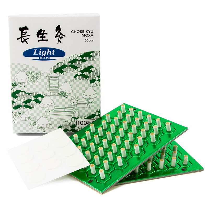 The most popular Ibuki stick-on moxa now available in a light version! (Less heat and odor). Consists of a 0.4" x 0.15" dia rolled cylinder of pure moxa. Box of 100.