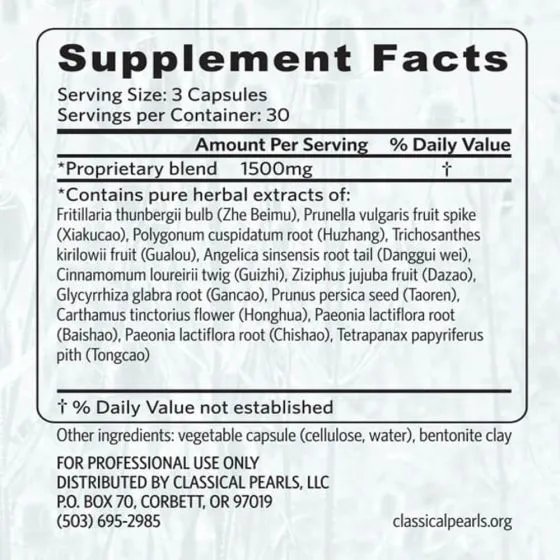 Mama Pearls by Classical Pearls is a formula primarily designed to support breast health. It is based on the therapeutic principle that breast accumulations often result from imbalances in the jueyin Pericardium system. To address this, the formula incorporates Danggui Sini Tang, a classic jueyin remedy. Additional herbs are included to enhance microcirculation, reduce masses, and offer direct anti-toxin and anti-accumulation effects. This formula may also benefit other areas of the body that are holographically connected to the jueyin system, such as the brain, uterus, ovaries, and liver.