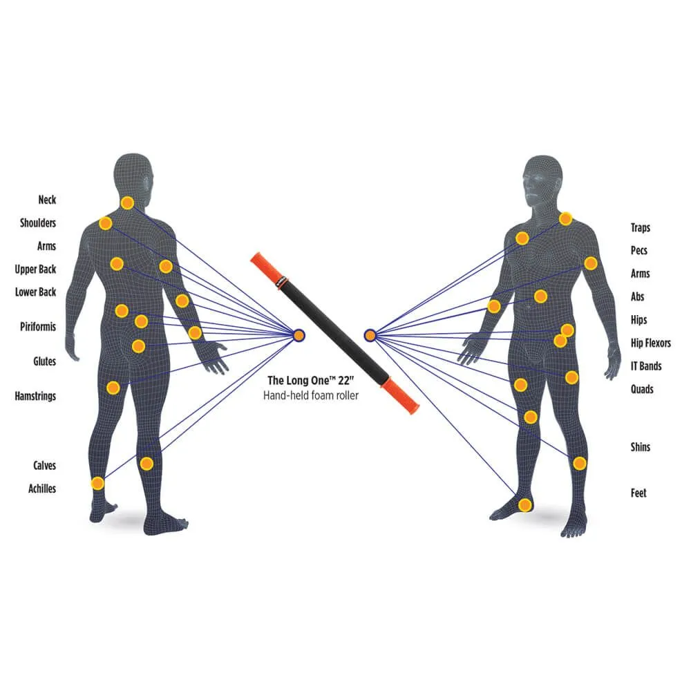The Long One Foam Roller by Tiger Tail provides an easy-to-use method for relief from sore and tight back muscles. This portable massage tool is durably designed and helps relieve minor muscle knots, aches, and soreness in the neck, shoulders, arms, hamstrings, glutes, feet, and any other heavily worked muscles. It is made in the USA, is easy-to-clean, and is made from medical grade, closed-cell, non-porous, latex-free, non-absorbing foam. Roller measures 22" long with a 14" long massage area.