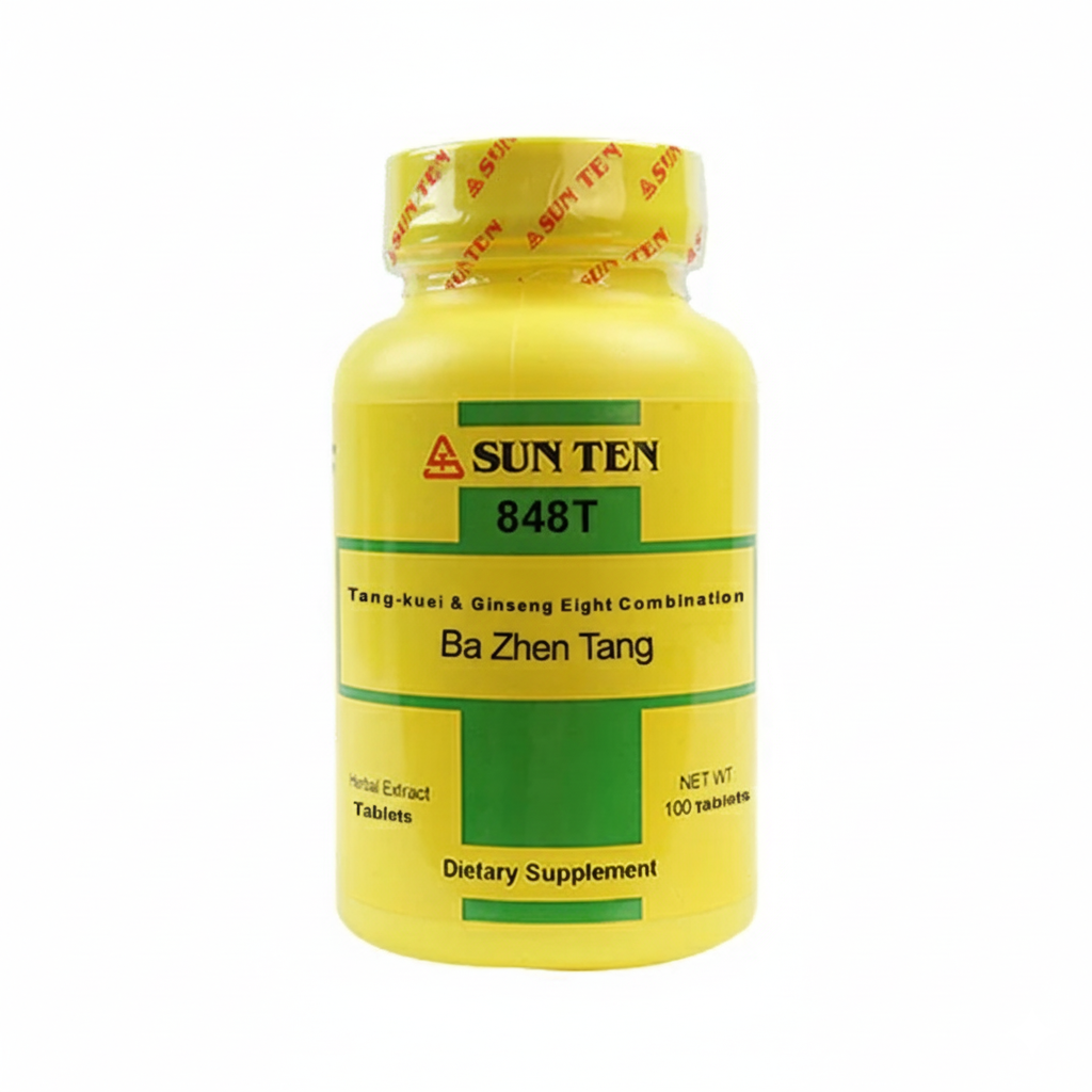 Ingredients: Radix Angelicae sinensis (dang gui), Rhizoma Chuanxiong (chuan xiong), Radix Paeoniae alba (bai shao), Radix Rehmanniae praeparata (shu di huang), Radix Ginseng (ren shen), Rhizoma Atractylodis macrocephalae (bai zhu), Poria (fu ling), Rhizoma Zingiberis recens (sheng jiang), Fructus Jujubae (da zao), Radix Glycyrrhizae praeparata cum melle (zhi gan cao).