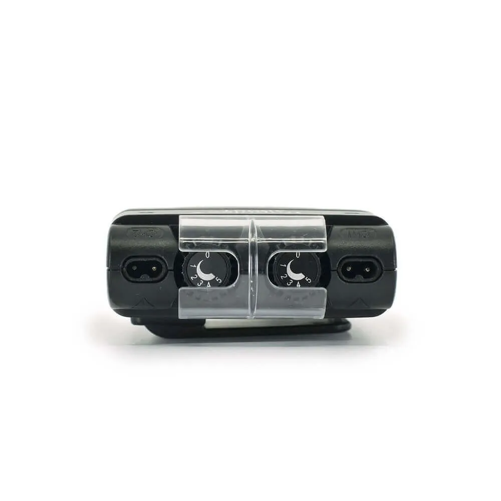 Now features a timer! Also features 3 frequency settings: (C) continuous adjustable frequency from 2 to 150 Hz, (M) pulse width modulation, and (B) burst. There is a permanently attached transparent sliding amplitude control cover for safety, and a single permanently attached sliding cover for both operation modes and battery (no more lost covers!). Comes with belt clip (attached horizontally for greater comfort), 2 lead wires, 4 square electrodes (2"x2"), battery, instruction manual and carrying case.