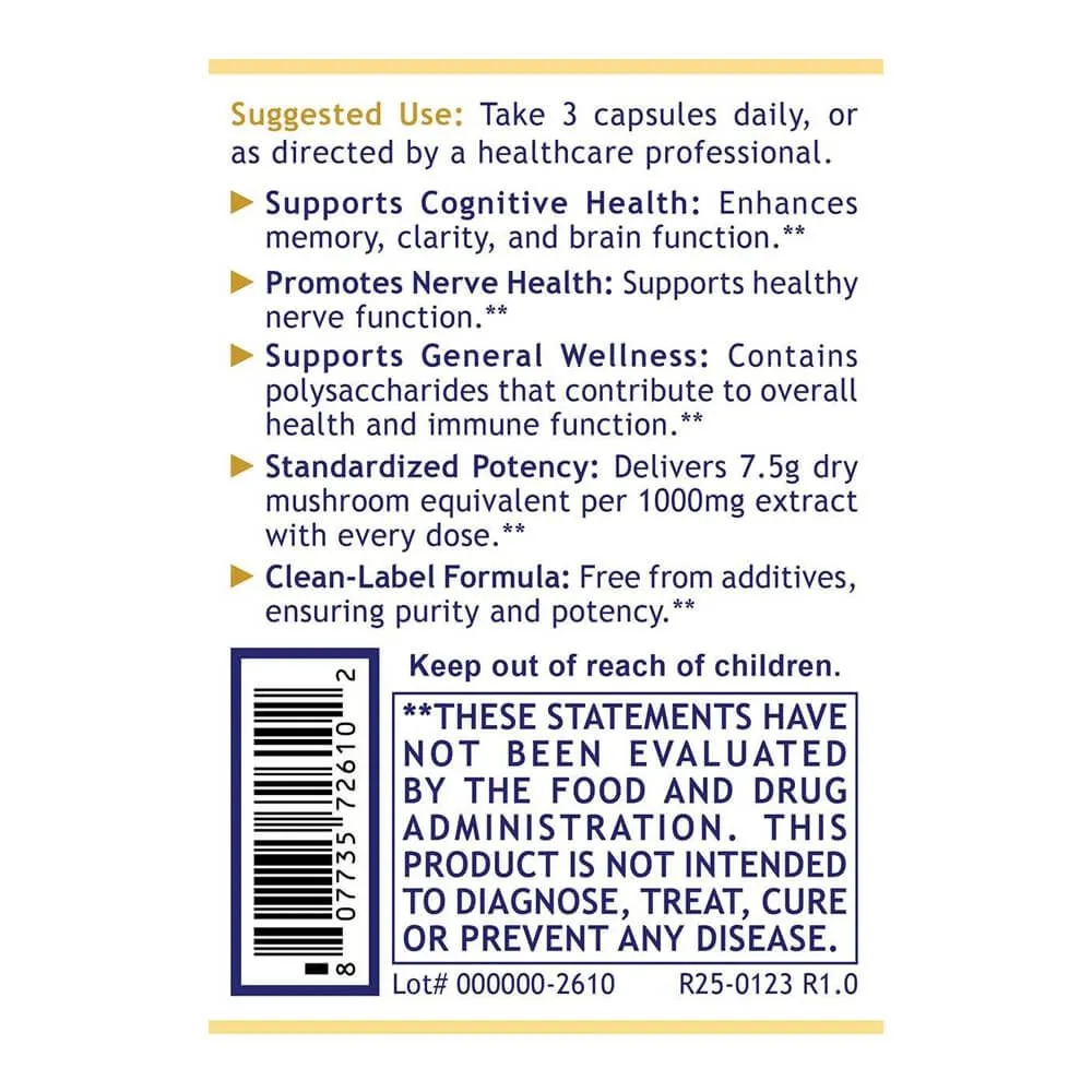 Suggested Use Adults take 3 capsules daily with meals or as recommended by your healthcare provider to support brain health, nerve function, and cognitive clarity.