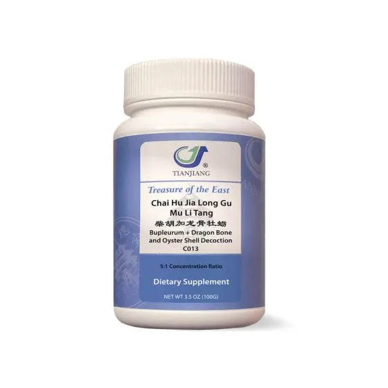 Treasure of the East's Chai Hu Jia Long Gu Mu Li Tang is a traditional Chinese herbal formula designed to sedates and calms the spirit, harmonize the shao yang, and unblock the three Yang Stages. Treasure of the East’s herbal extracts are full-spectrum, water-based extracts using only purified water that are concentrated 5:1 granules (100g/bottle).
