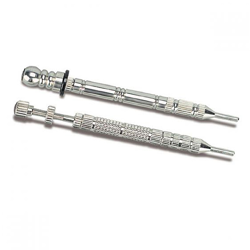 These introducer devices are for use with SooJi Chim Handle Needles (see DBC Sooji Chim needles on pg. 26). Each measures 3.5” long and features magnets on the inner tube and top head to pick up the small sooji chim needles. The Gravity-Type introducer uses the weight of the plunger for insertion while the Spring-Type utilizes an inner spring with depth adjustment knob for insertion.